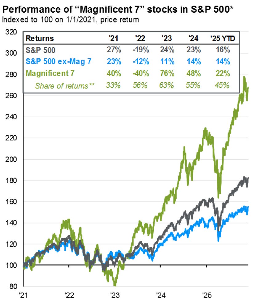 The Magnificent 7 drove the vast majority of the gains of the S&P 500 in 2025.