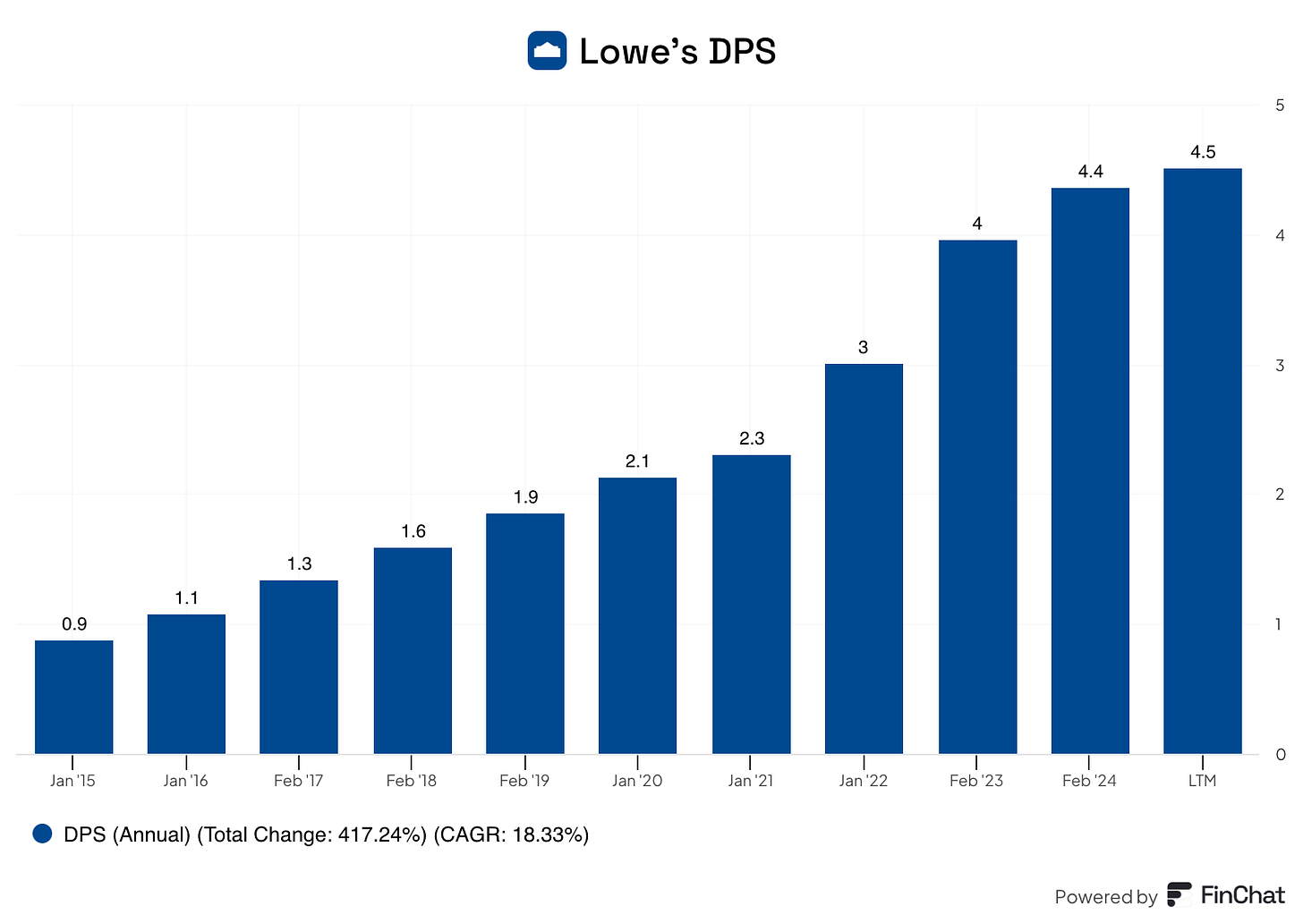 Lowe’s is a Dividend King, raising its dividend for 53 (!) years in a row.