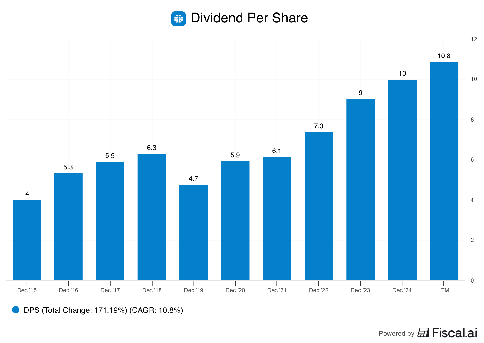 The evolution of their dividend per share look as follows: