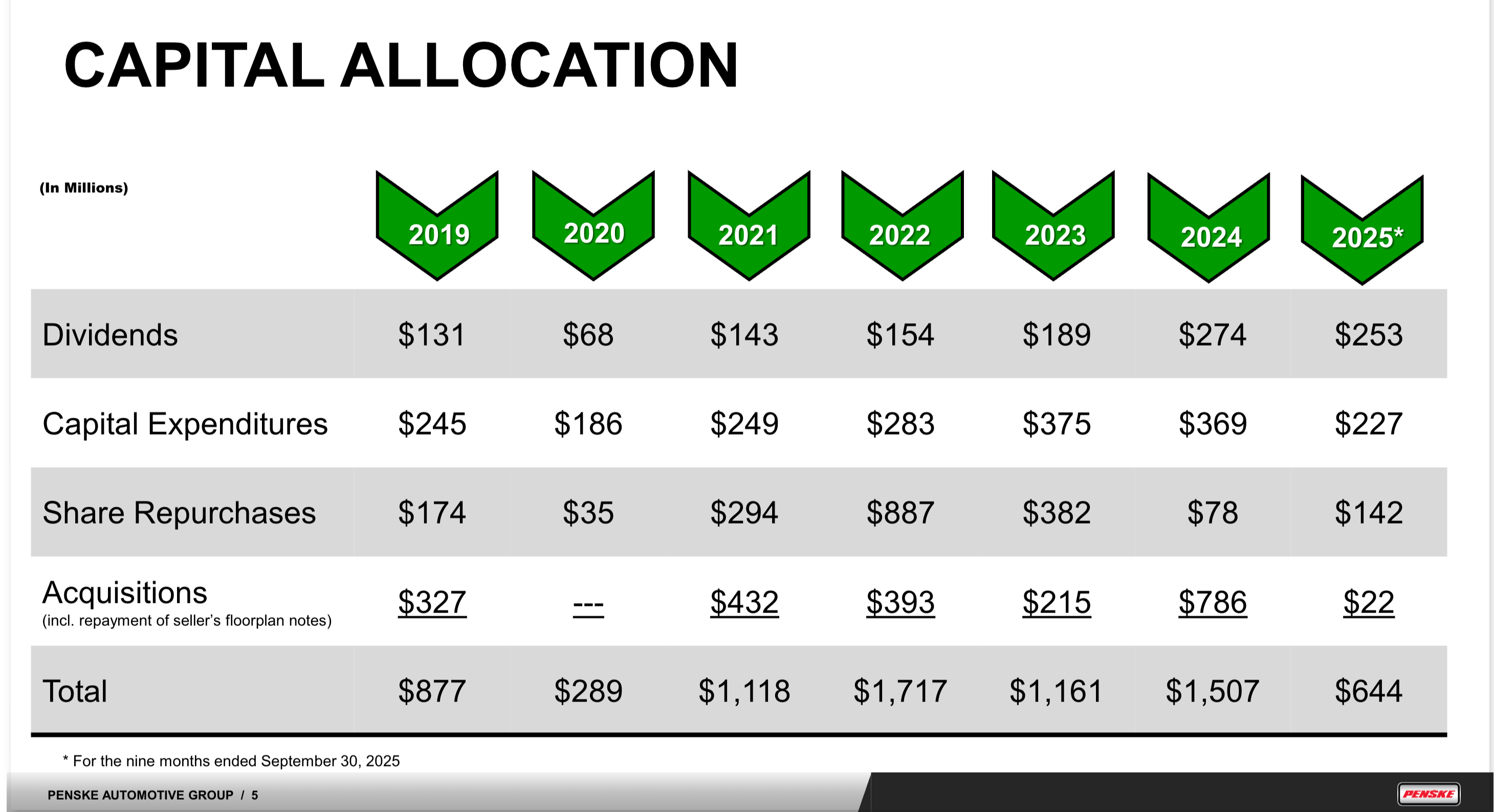 Penske is one of the world’s largest automotive retailers and a leading international transportation services company. They operate hundreds of retail dealerships across the US and UK, alongside a significant commercial truck segment and a large stake in Penske Transportation Solutions.
