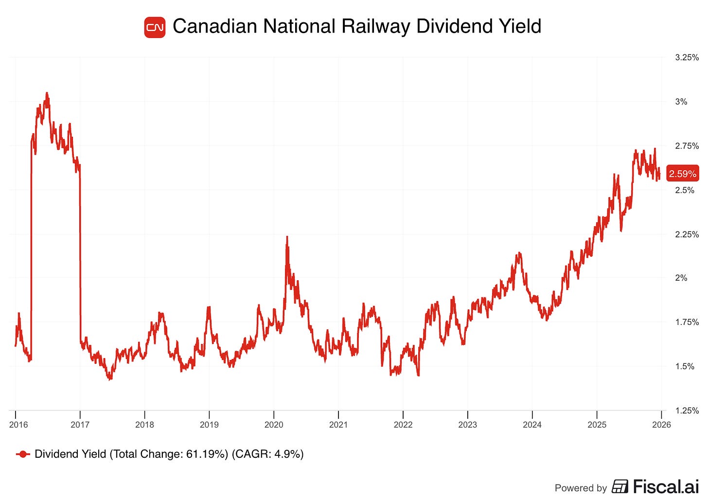 Efficiency: CN is consistently one of the most efficient railroads in the world, generating massive free cash flow that supports a growing dividend.