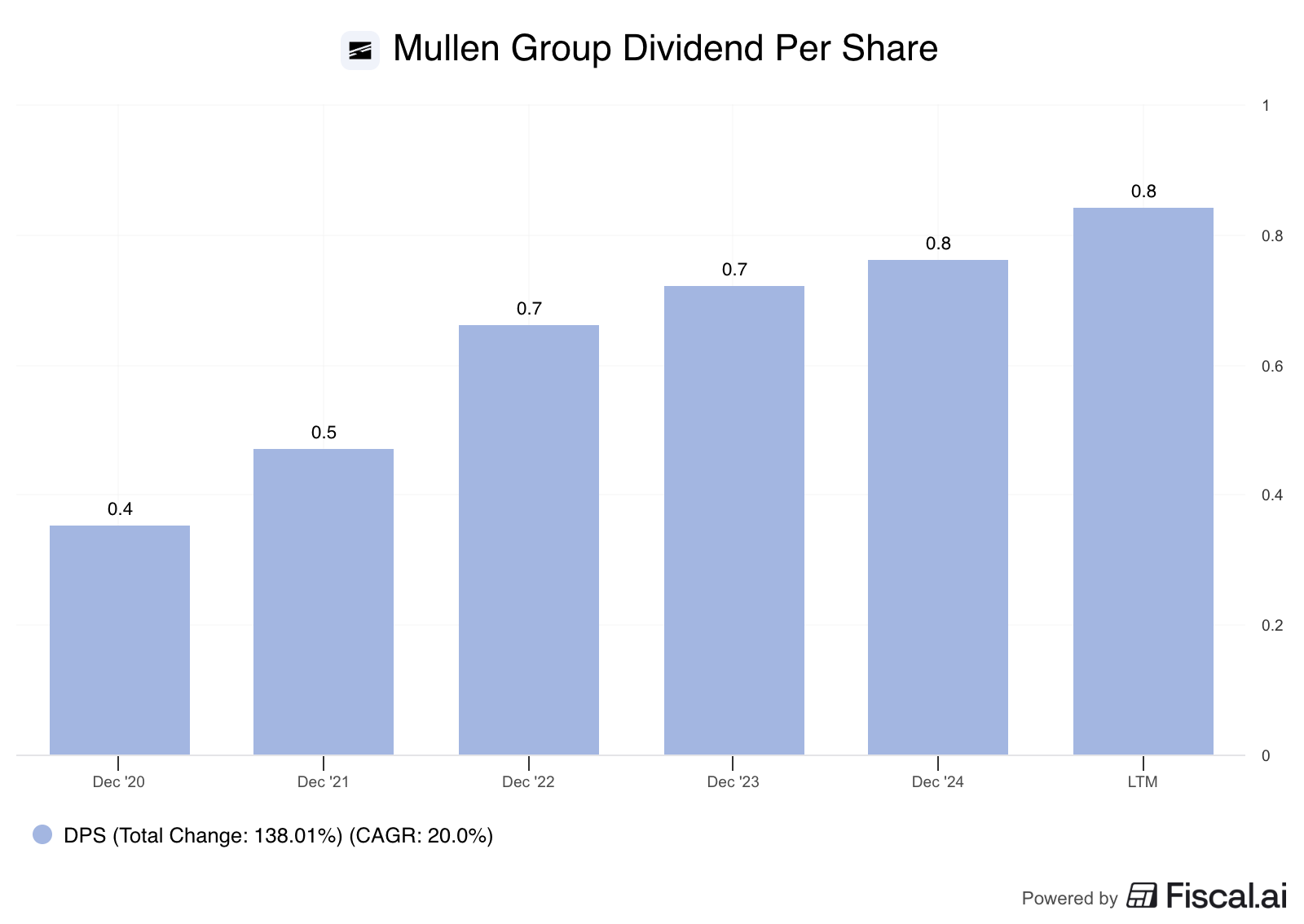 Dividend Yield: Mullen is offering a 5% yield that’s well-covered by steady cash flow.