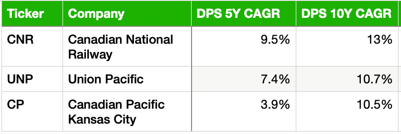 Running a railroad is expensive upfront, but once the infrastructure is in place, it throws off huge cash flows. That’s why they can afford to pay - and grow - dividends.