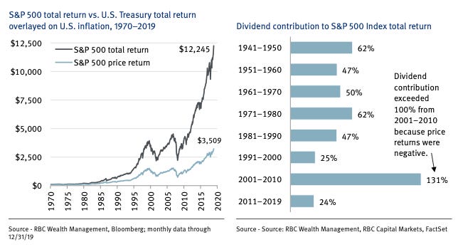 There’s a lot of data showing how dividends are responsible for a lot of the total return of stocks over the long term.