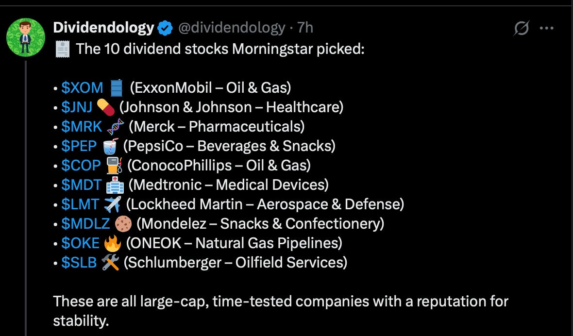 Here are 10 dividend stocks picked for 2025 by Morningstar.