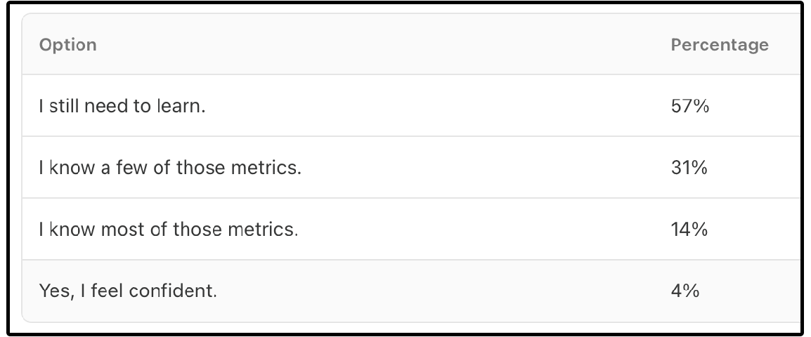 But only 4% felt confident in how to analyze the key metrics for these asset classes!