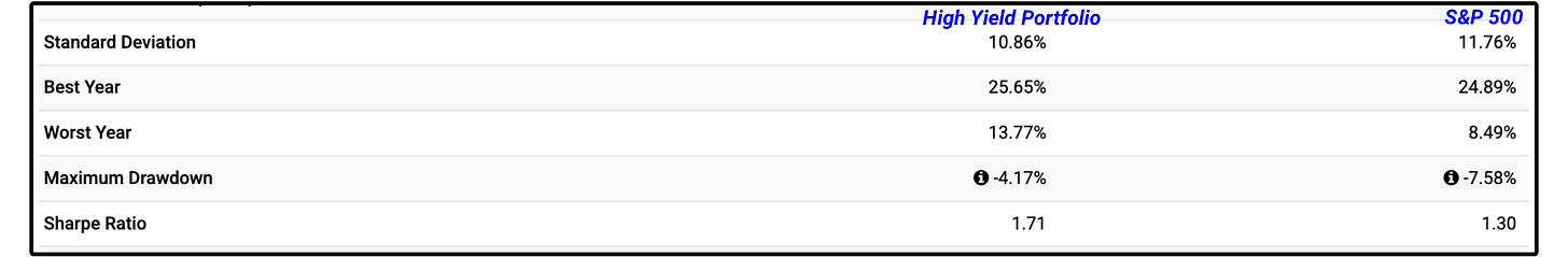 Basically, this portfolio took on less risk than the S&P 500, while still experiencing better returns.