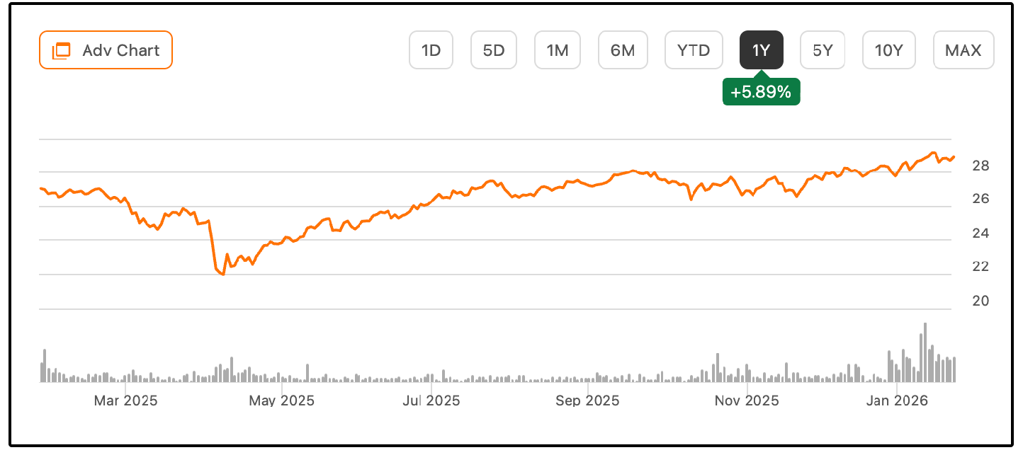 As an ETF, it provides built-in diversification, which helps reduce the risk of any one issuer defaulting.