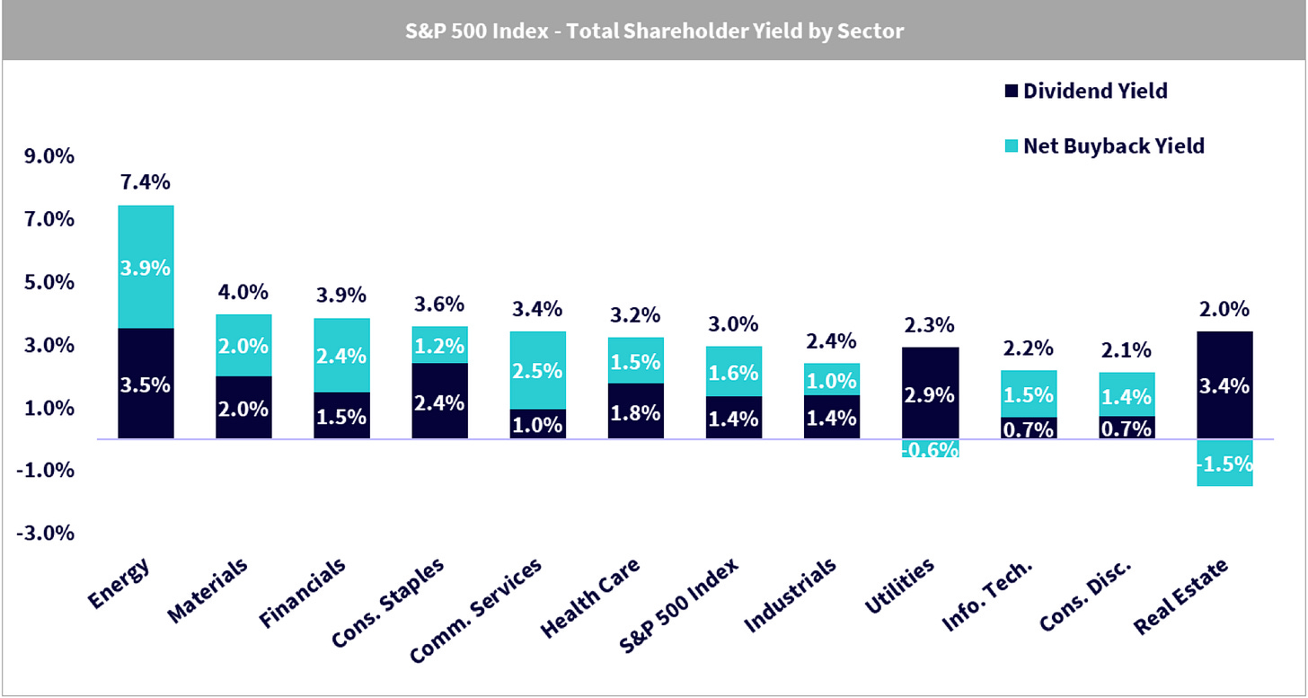 The image below is from the report and shows the Shareholder Yield of the market sectors of the S&P 500.