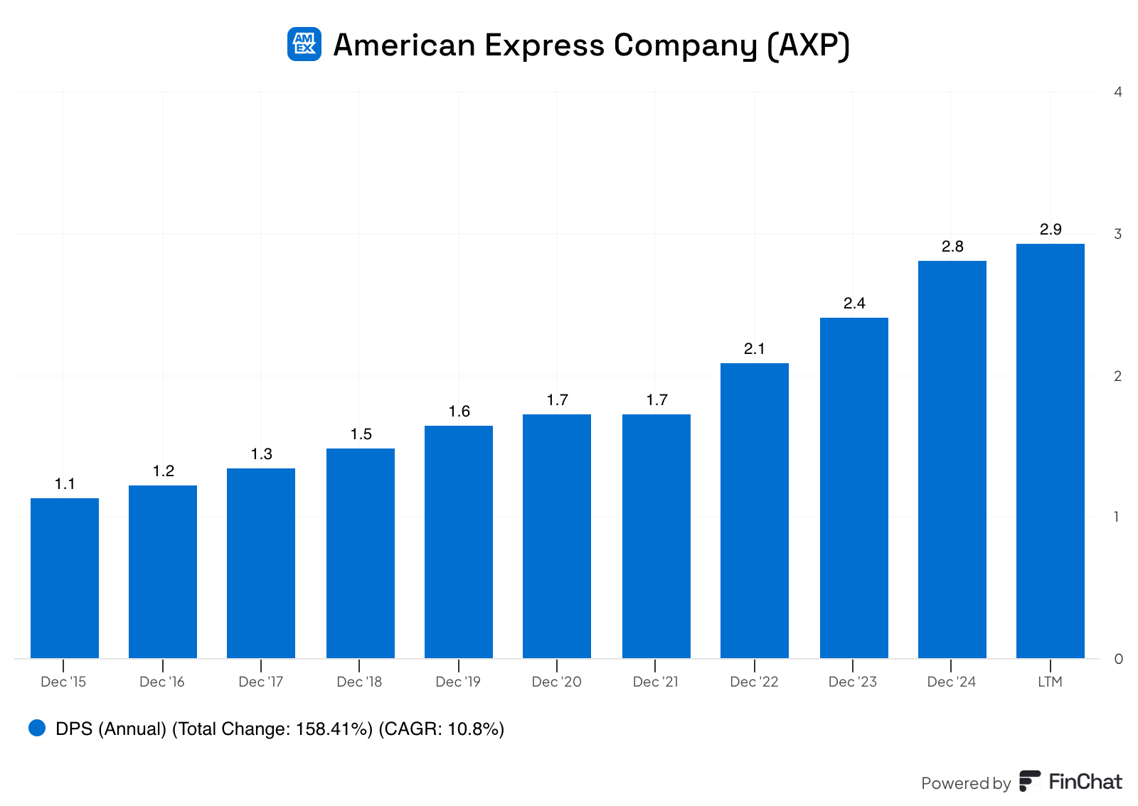American Express (AXP) is a financial services company best known for its credit cards and payment solutions.