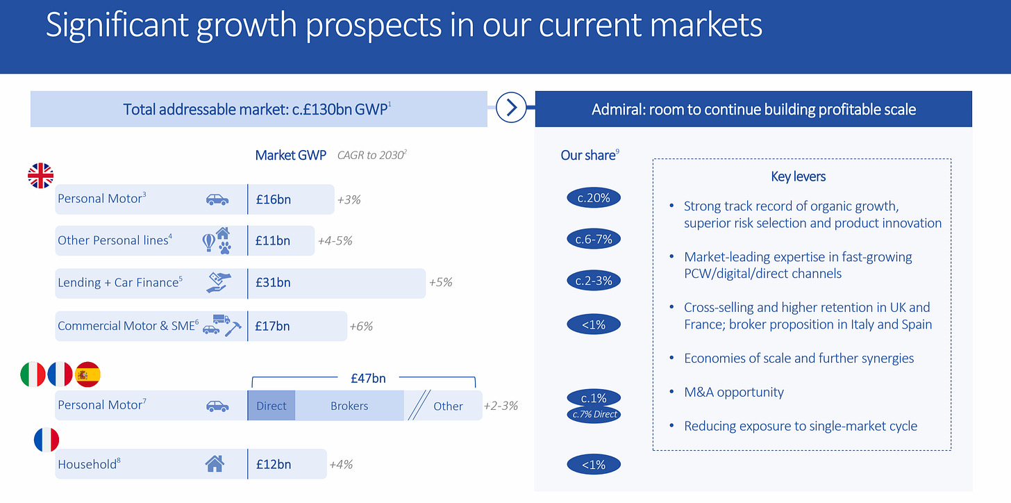 These are all expected to grow at between 4% and 6% per year, and Admiral has a very small market share in each.
