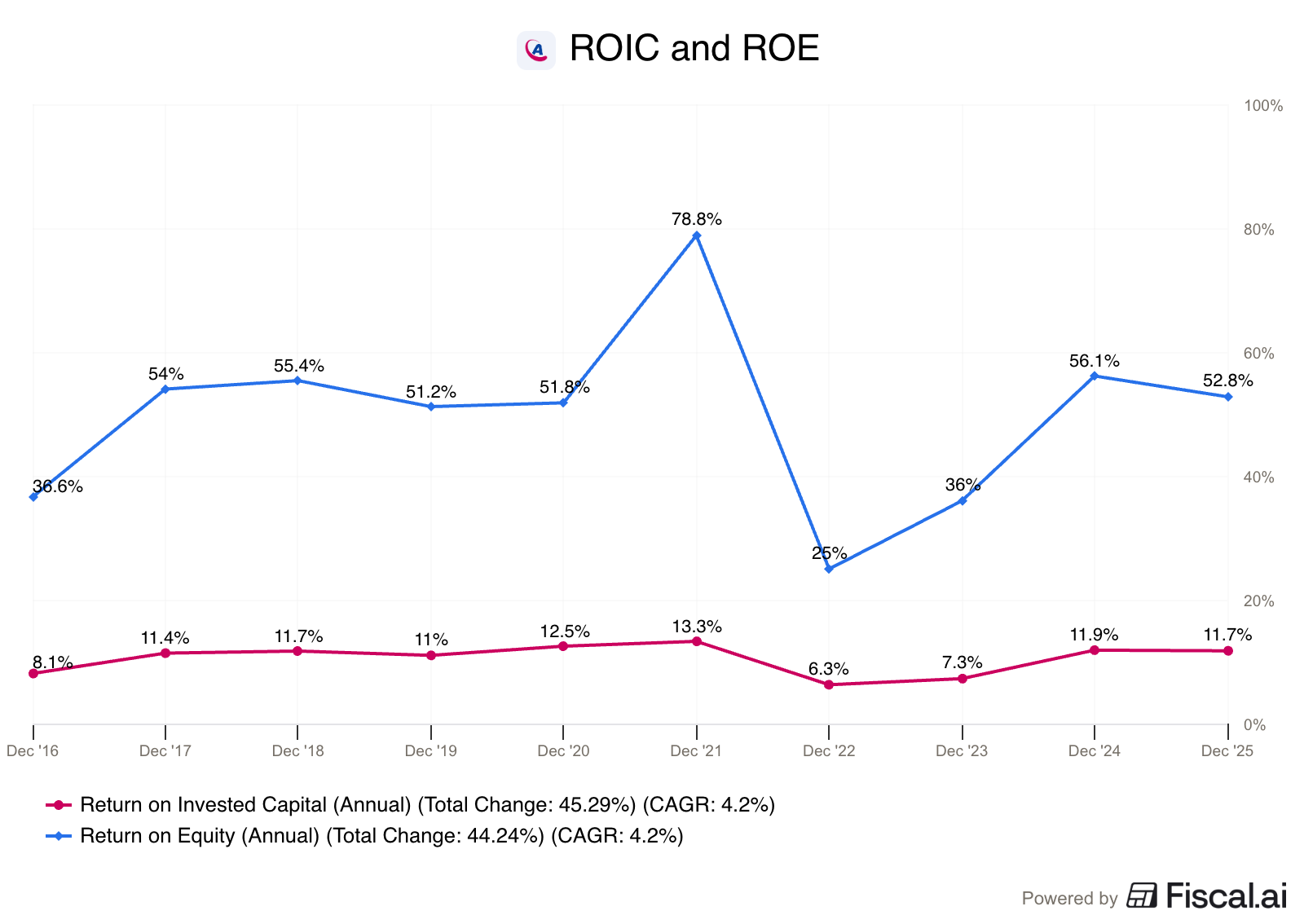 The leadership team has reinvested in the business at attractive returns.