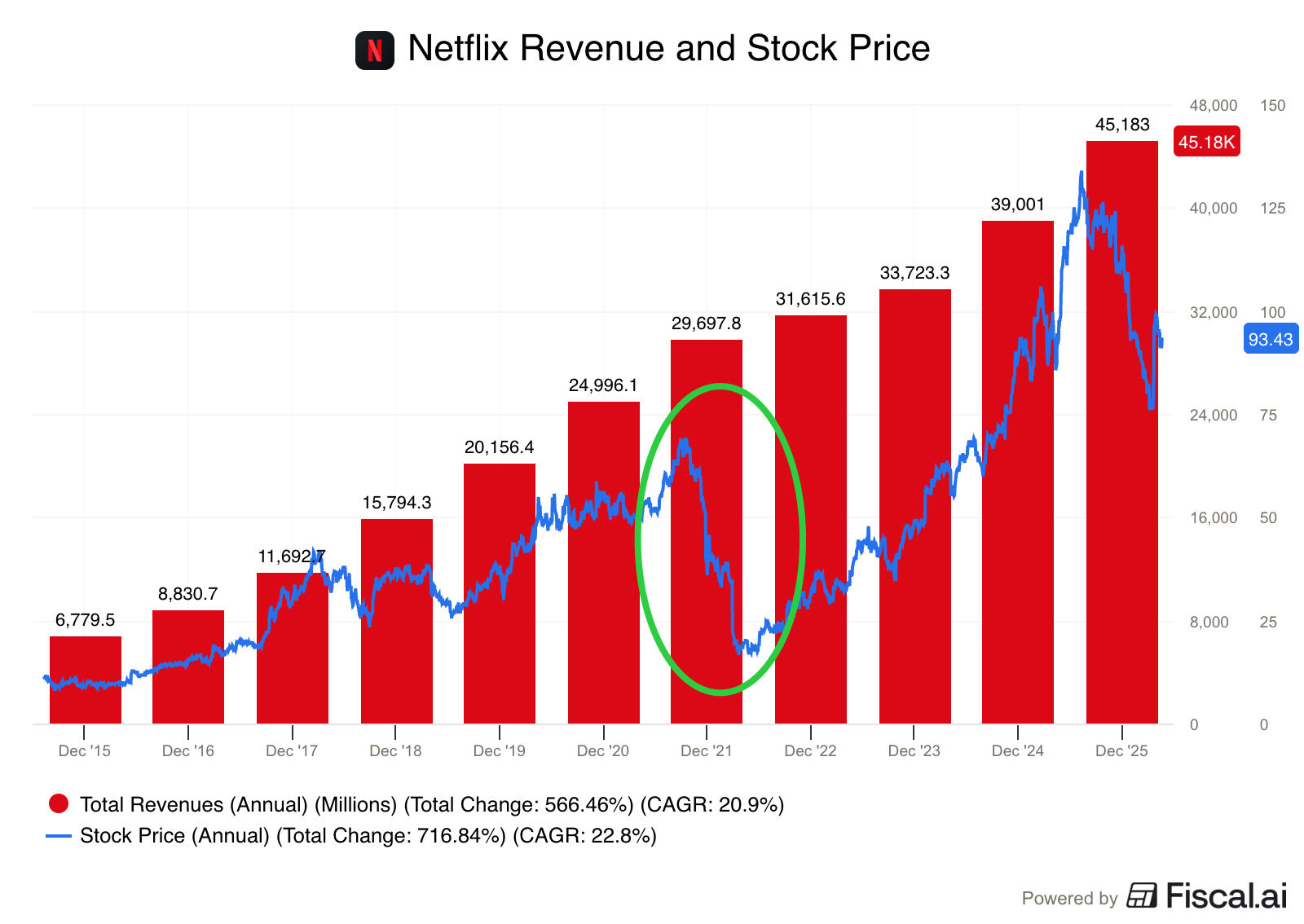 But if you bought Netflix at $20 a share in 2022, you’ve gained 46% on your investment every single year since then.
