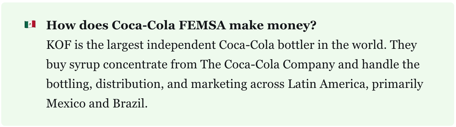Think of KOF is the last mile of Coca-Cola’s empire in fast-growing markets.