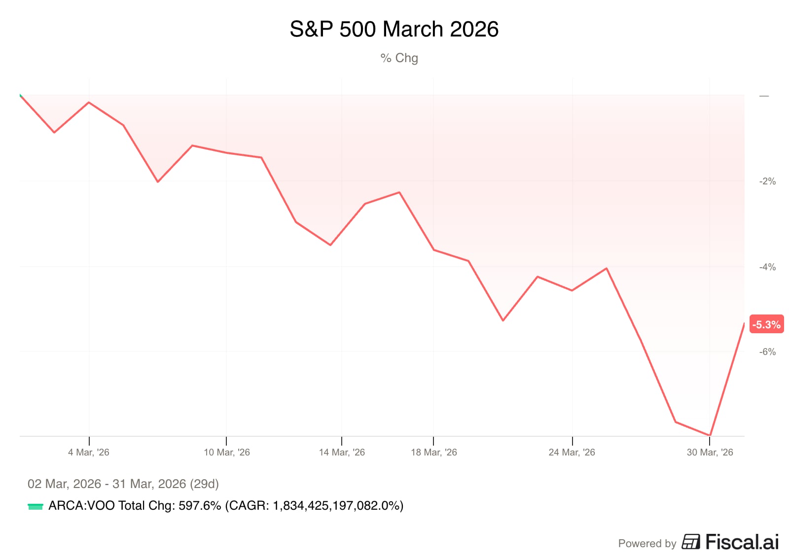 The S&P 500 declined by 5.3% in March.