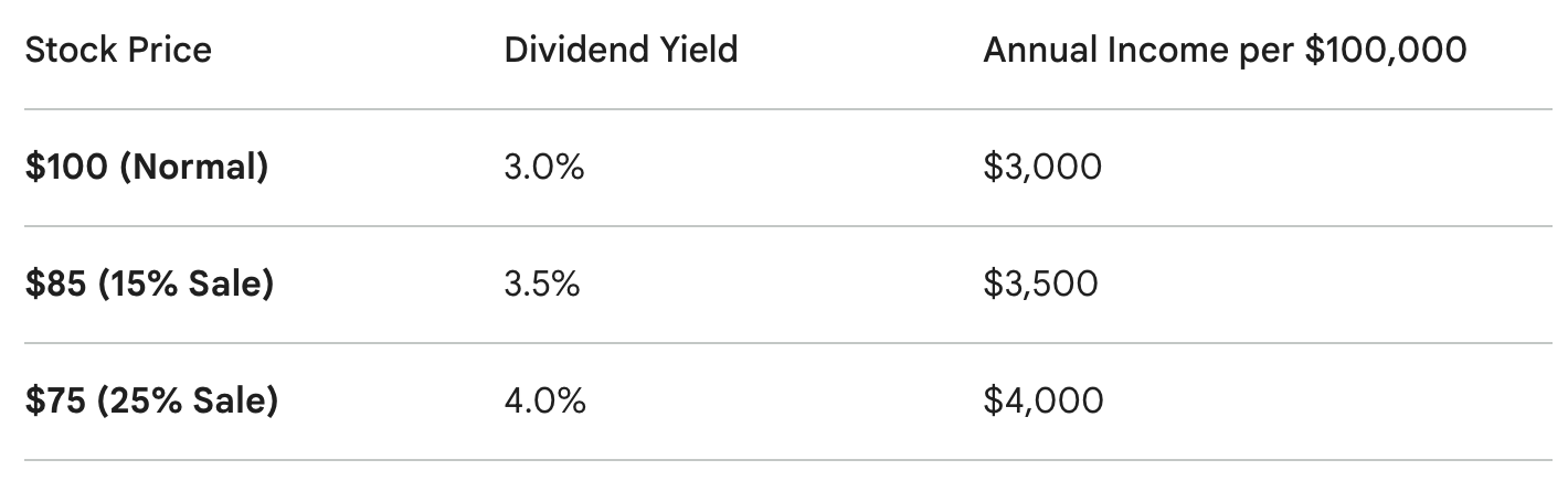 Every dollar you invest buys more income than it did before.