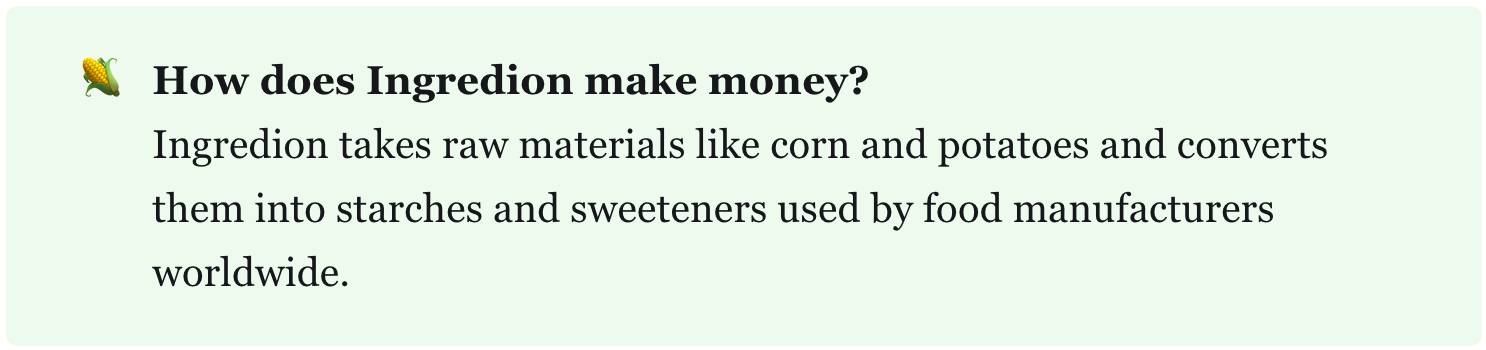 Second, nobody talks about Ingredion when there are AI stocks to chase.
