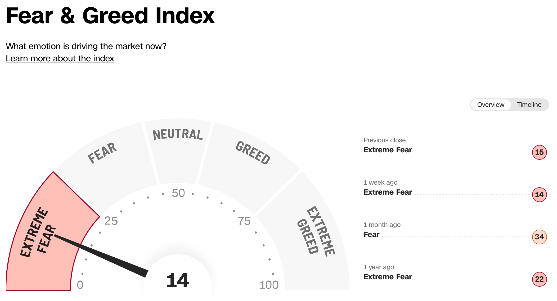 Investors are in Extreme Fear today according to the Fear & Greed Index: