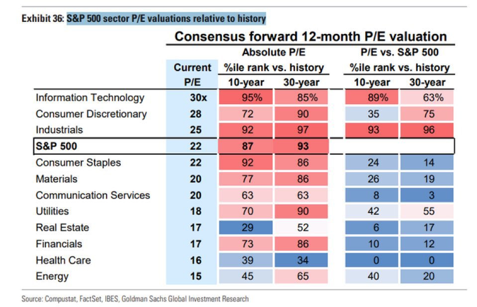 The entire sector is currently trading at a discount to both its average 10-year P/E and 30-year P/E.