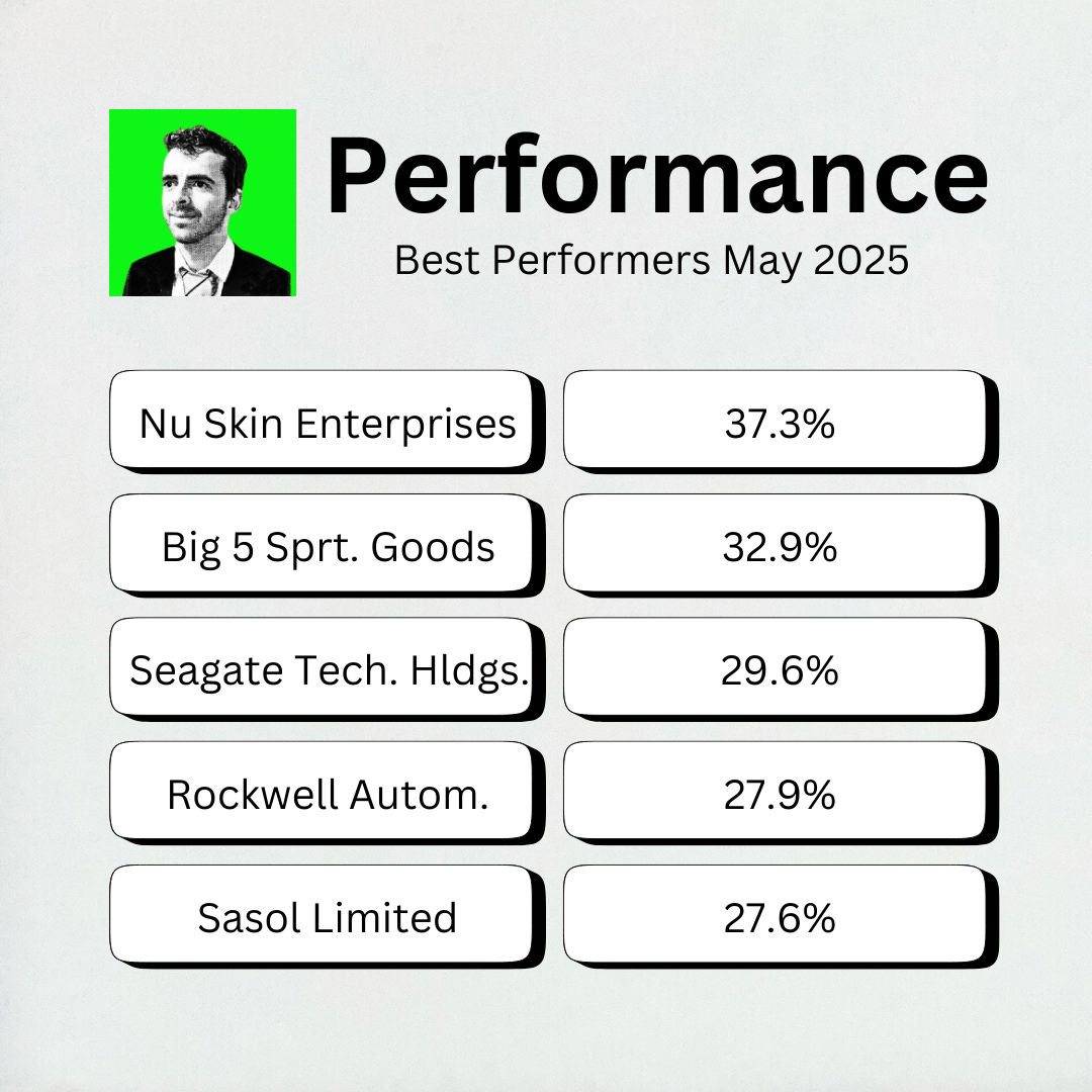Nu Skin Enterprises was this month’s best performer, rising over 37%.