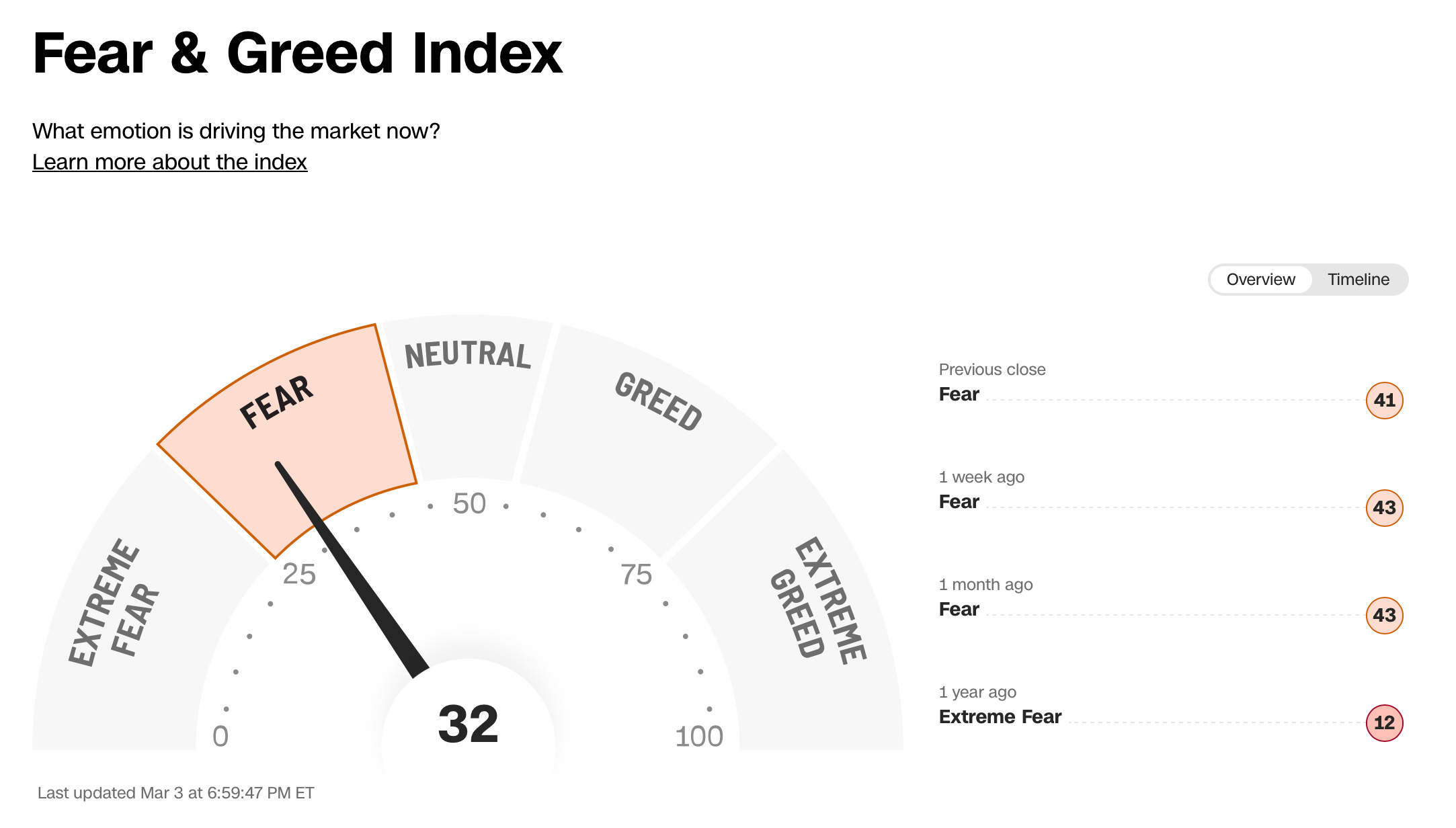 Investors are in ‘Fear’ today according to the Fear & Greed Index: