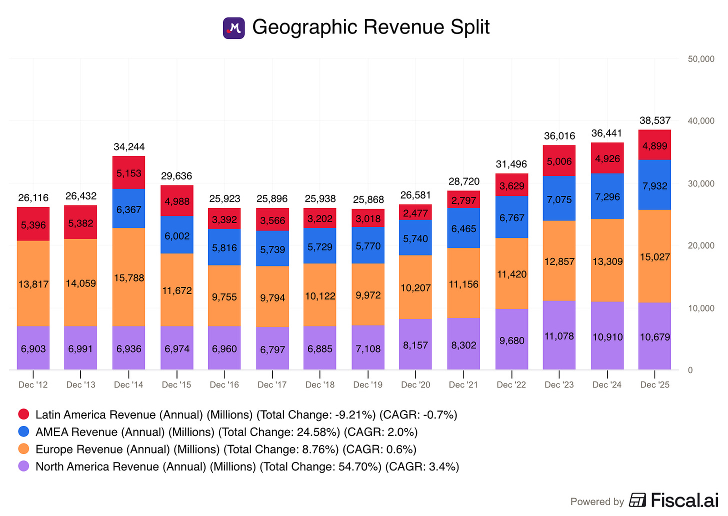 Unlike a lot of it’s competitors, Mondelez has huge exposure to developing markets like India and China, where a rising middle class is consuming more packaged snacks every year.