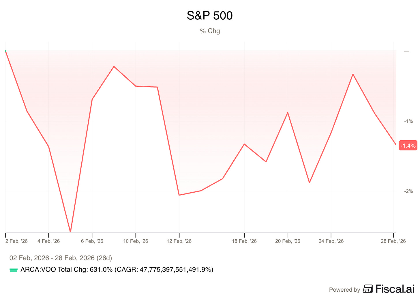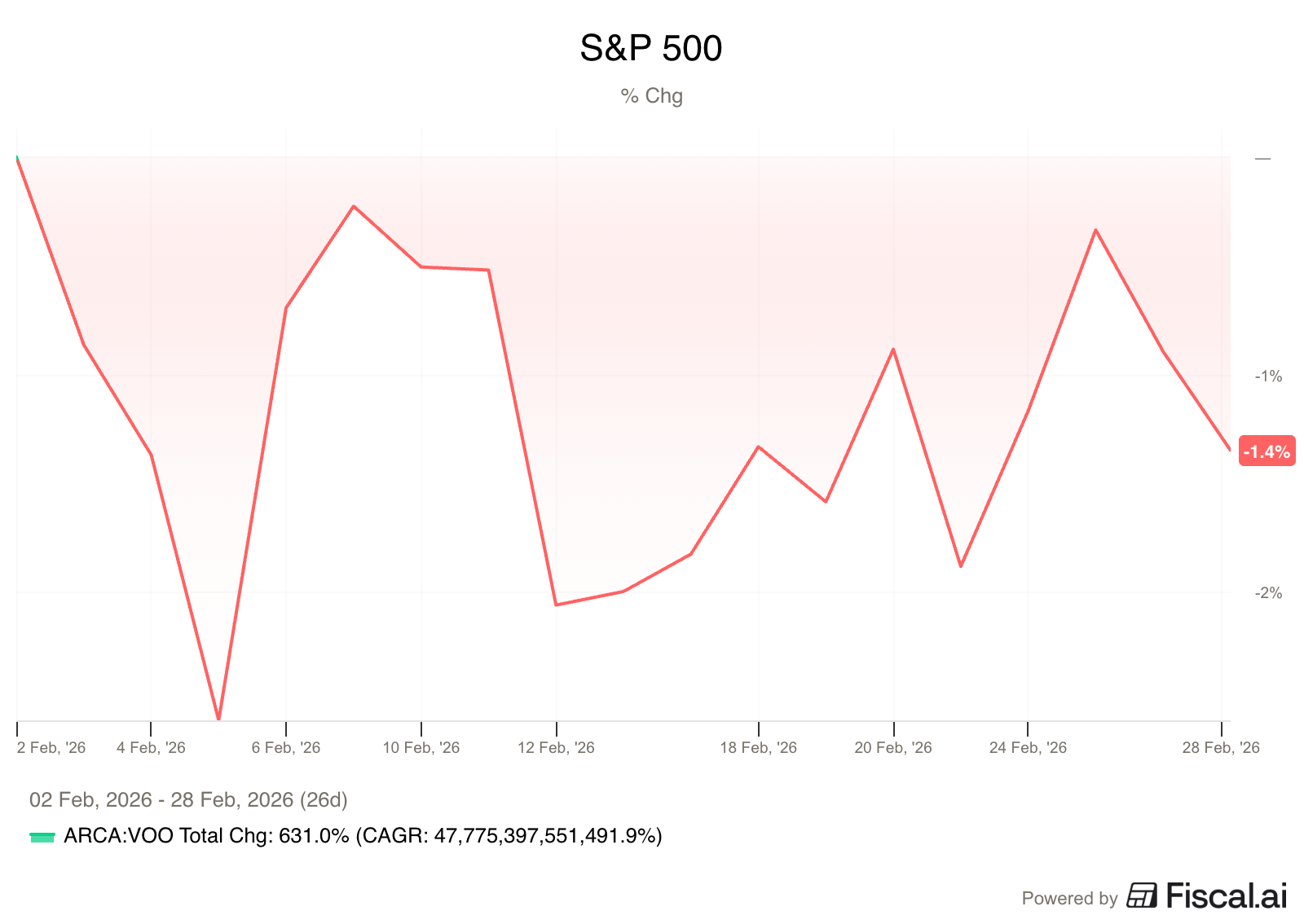 The S&P 500 was down 1.4% in February
