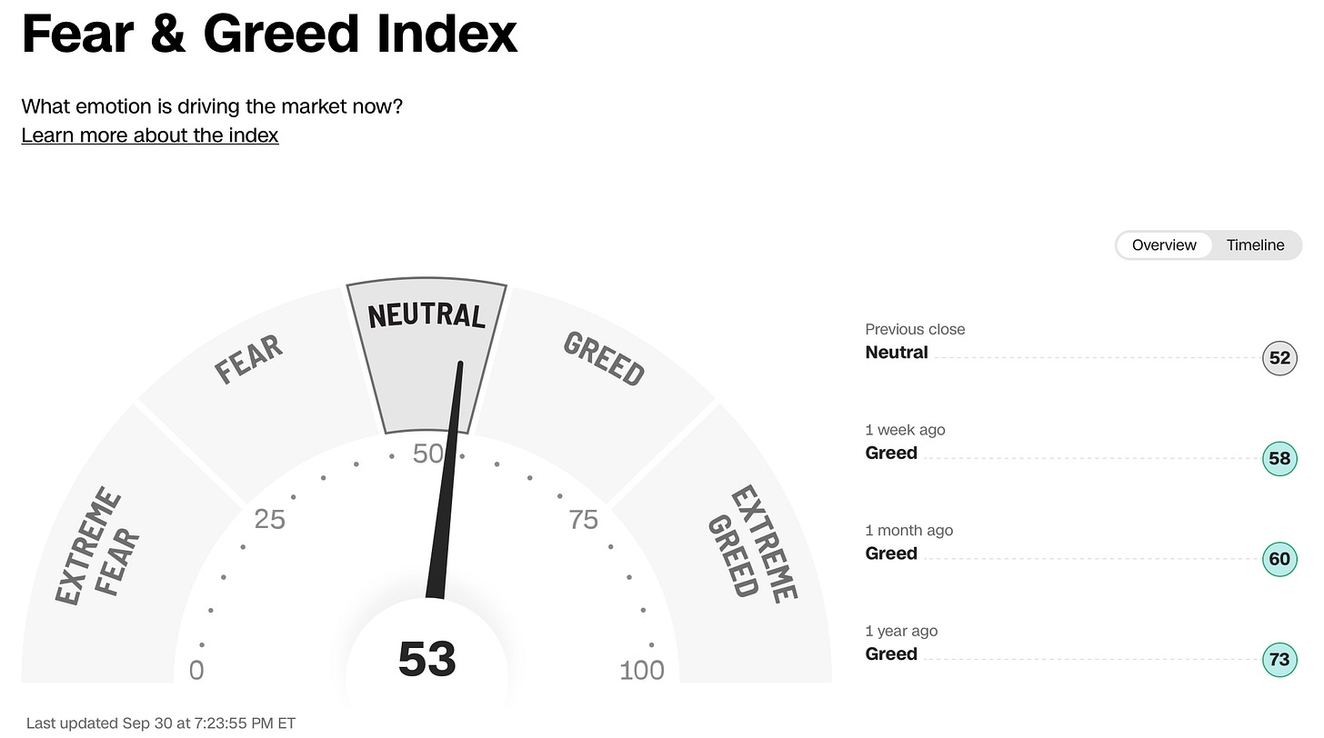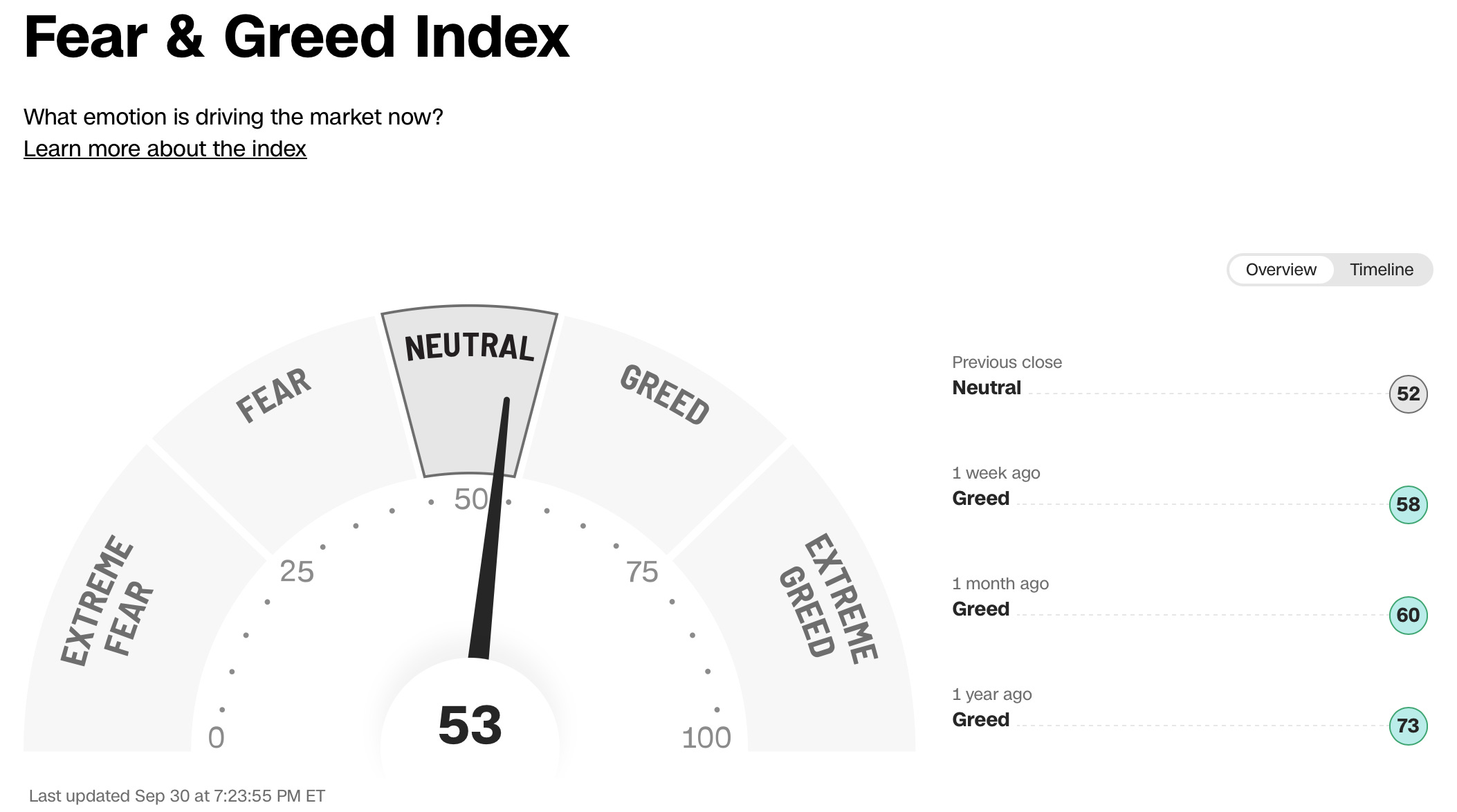 The Fear & Greed Index indicates that we’re currently in ‘Neutral’ Mode.