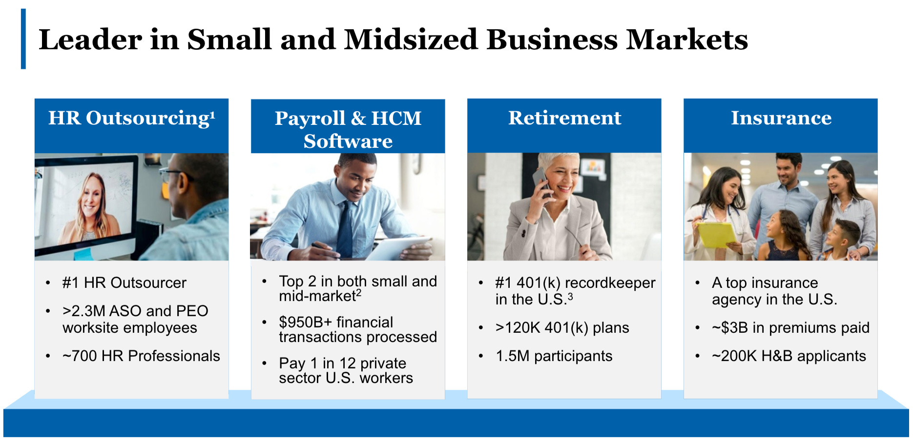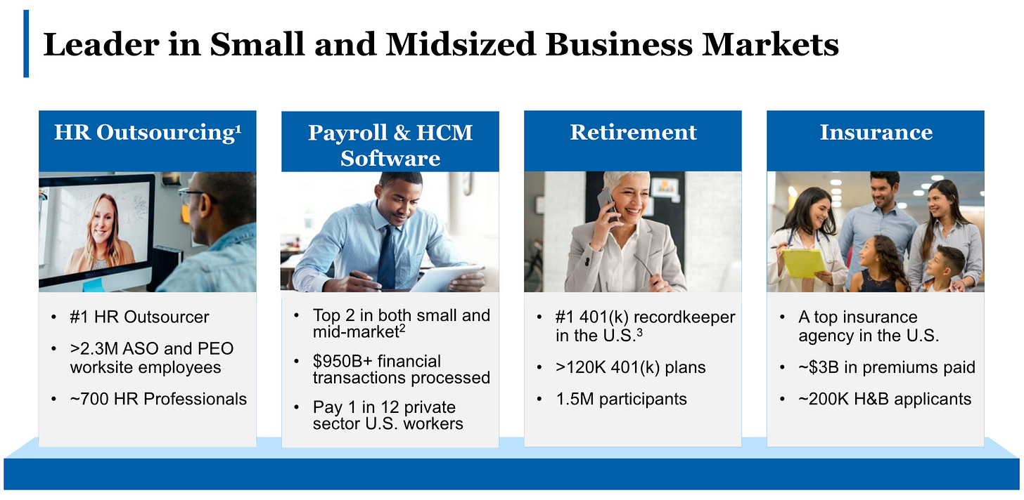 Paychex provides payroll, HR, and benefits outsourcing to over 740,000 small and medium-sized businesses in the U.S.