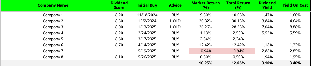 Since November, the Compounding Dividends Portfolio is up 12.06%.
