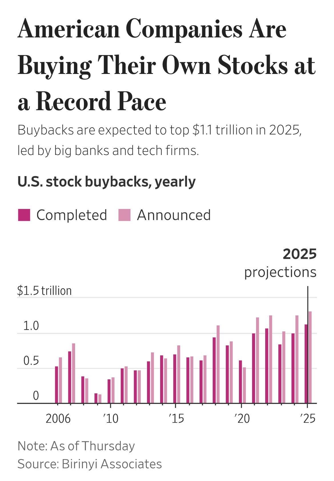 In 2025, buybacks could top $1.1 trillion, led by big banks and tech firms.