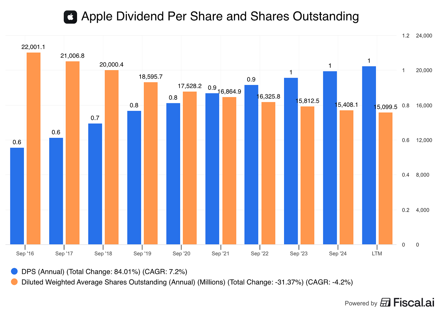 Apple reduced the number of shares by nearly 1/3 (!) between 2016 and today.