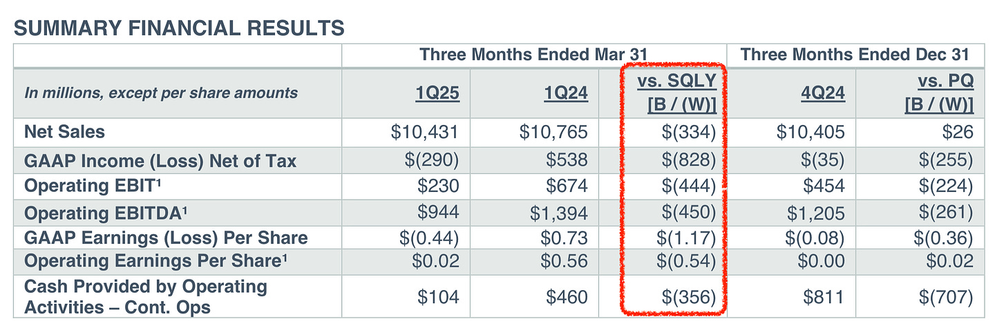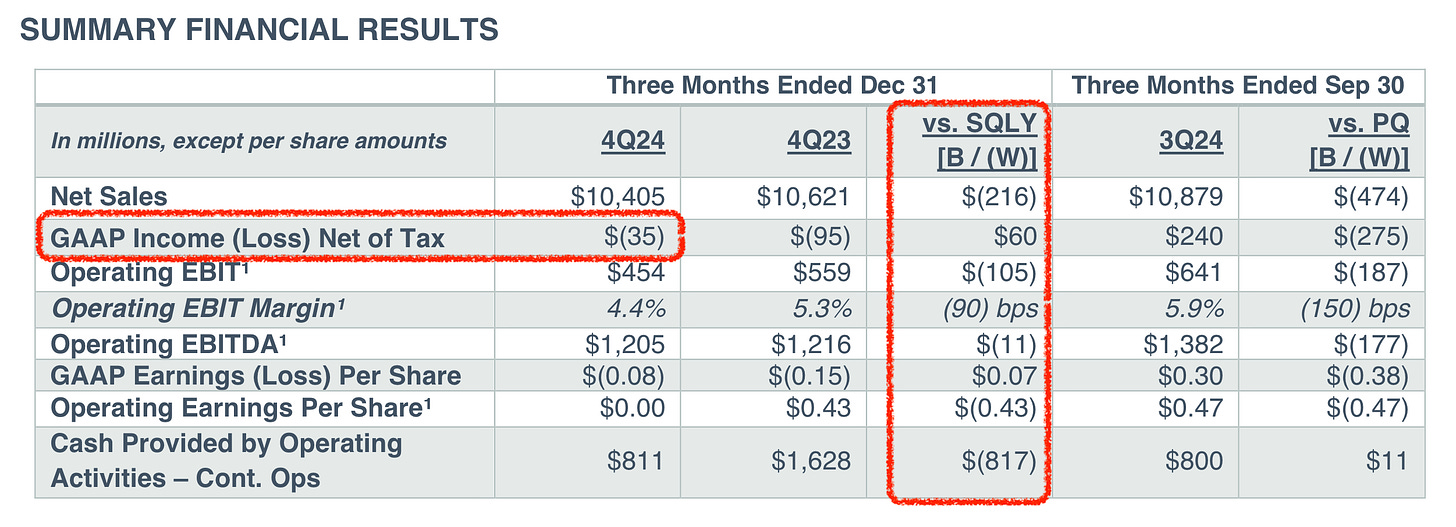 Negative net income again, but more importantly sales, earnings, and cash flow were all down from a year ago.