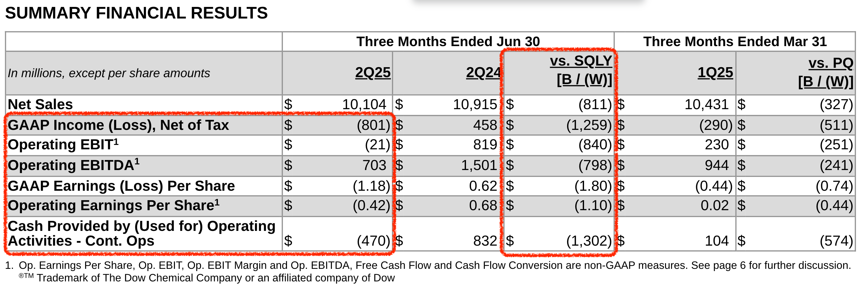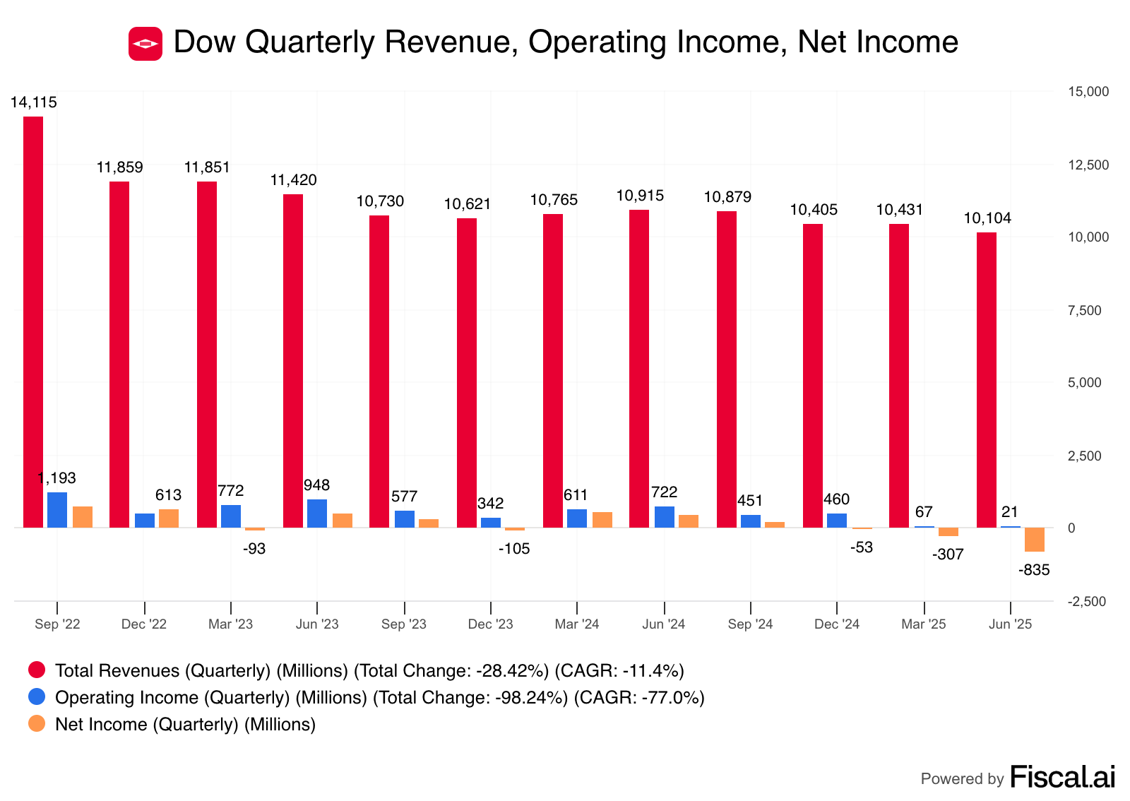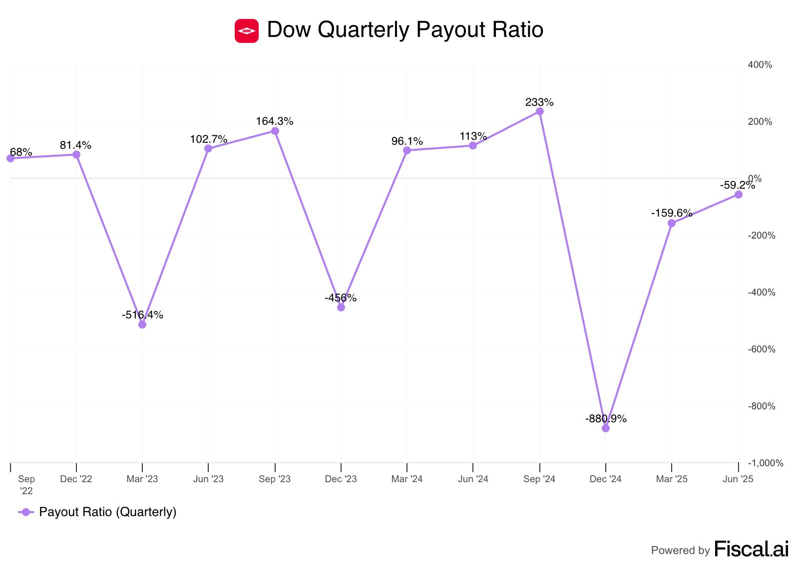 Since December 2022, Dow either lost money, or paid out more than they earned in every single quarter except for March of 2024.