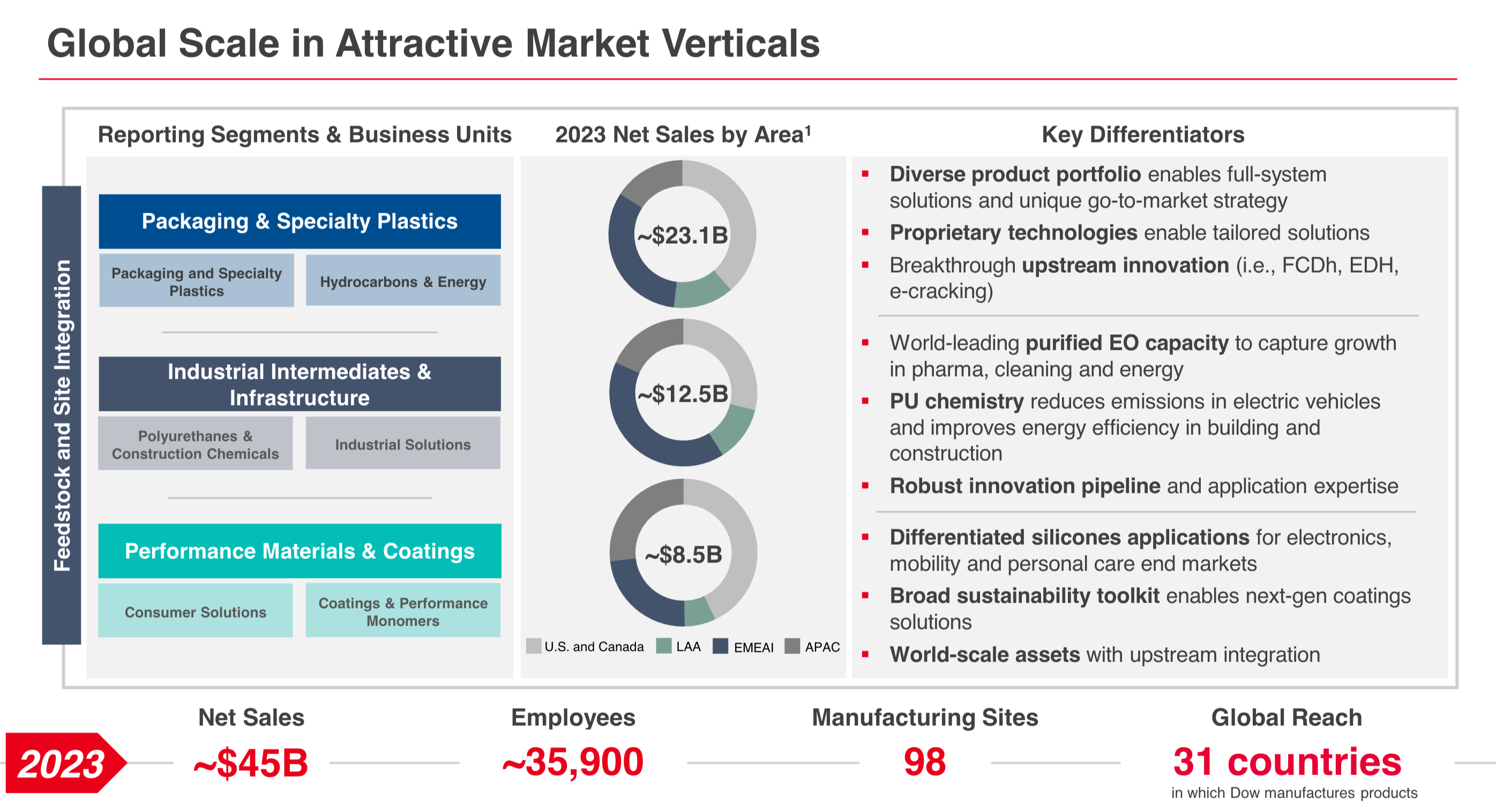Dow is one of the world's leading suppliers of basic materials to many different industries around the world.