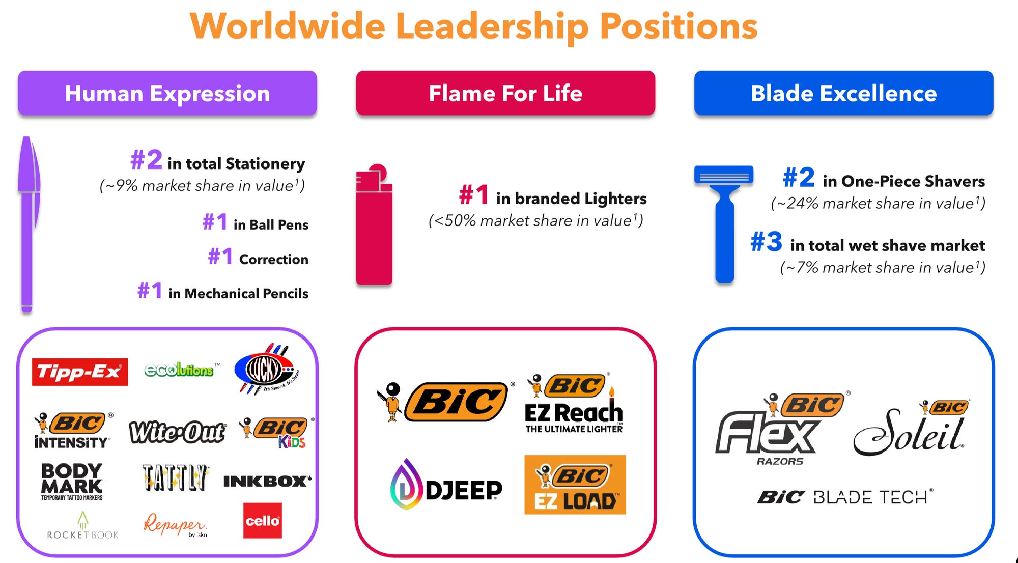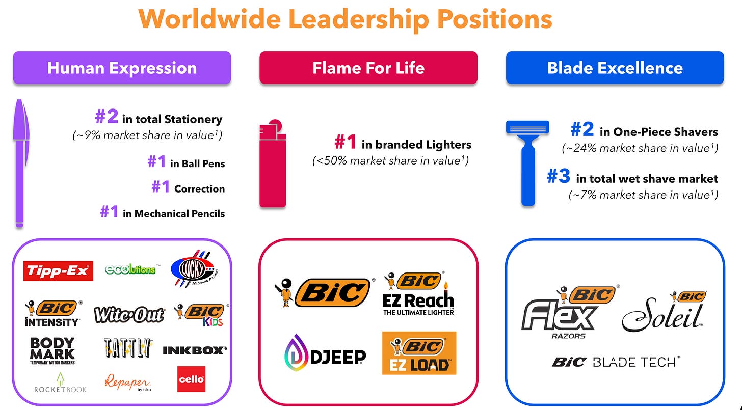 BIC makes everyday consumer products like their pens, lighters, and razors. It earns money from selling these items globally through retailers and distributors.