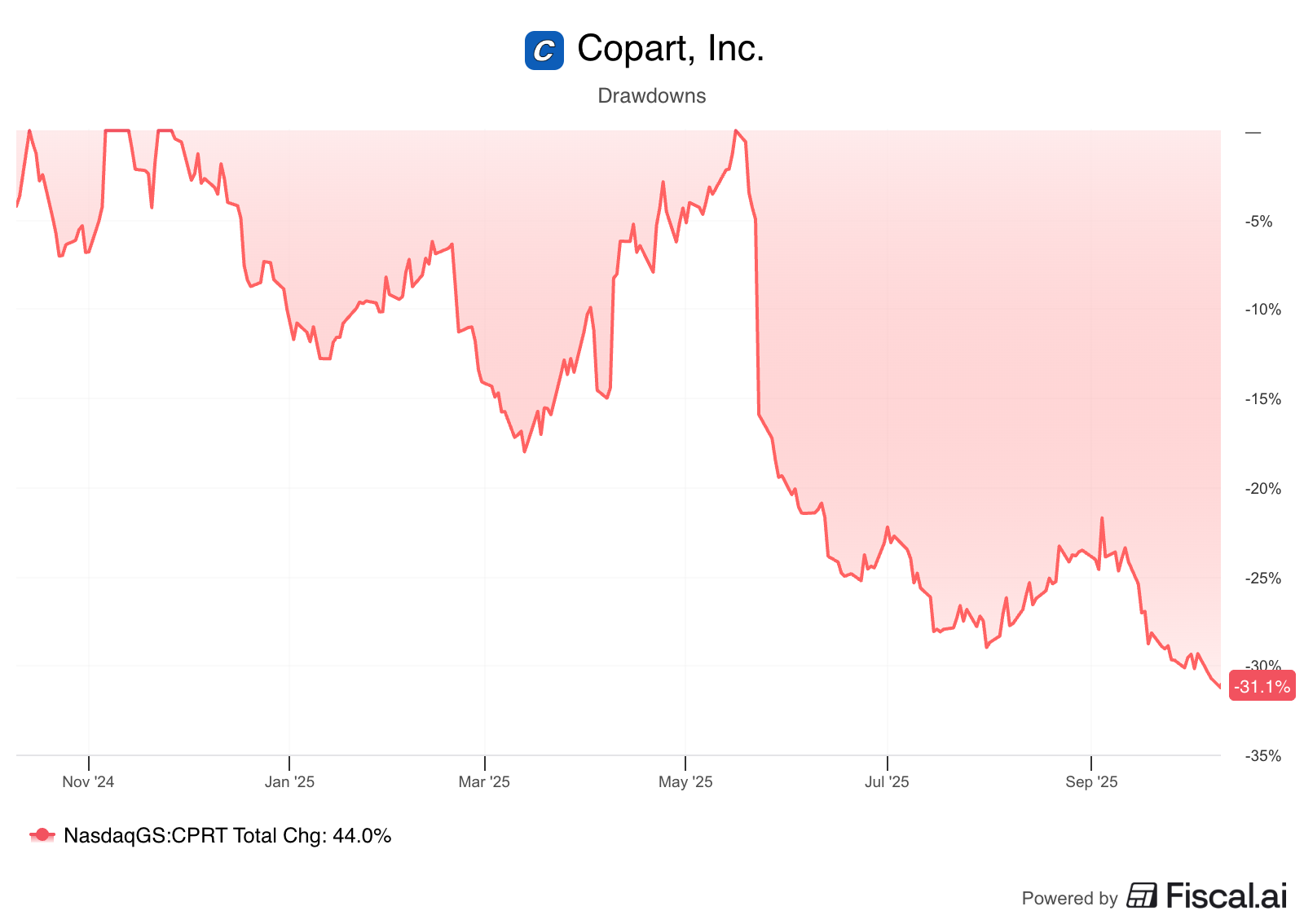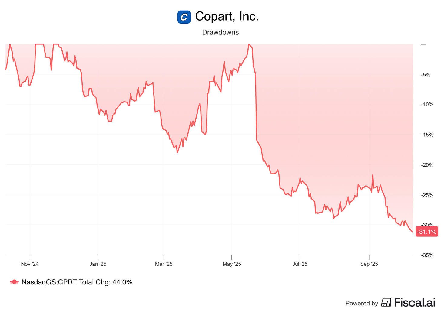 Copart (CPRT) hasn’t been as lucky. It’s still down more than 30% this year.