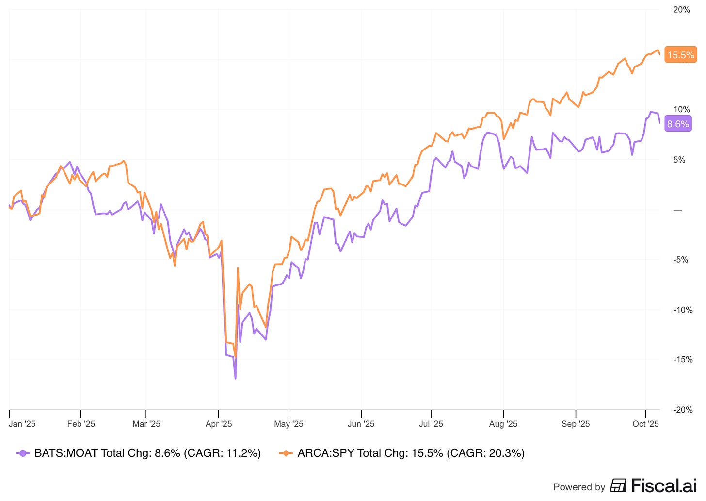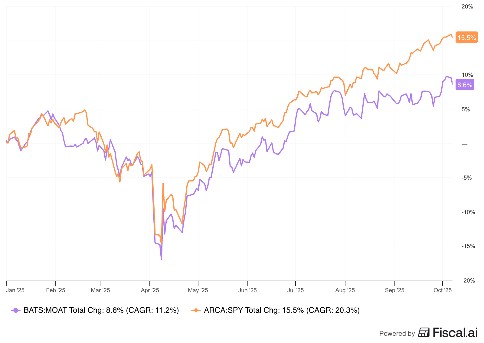 The Morningstar Wide Moat Index has underperformed the S&P 500.