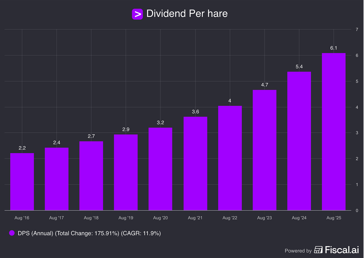 The company is increasing its dividend every single year:
