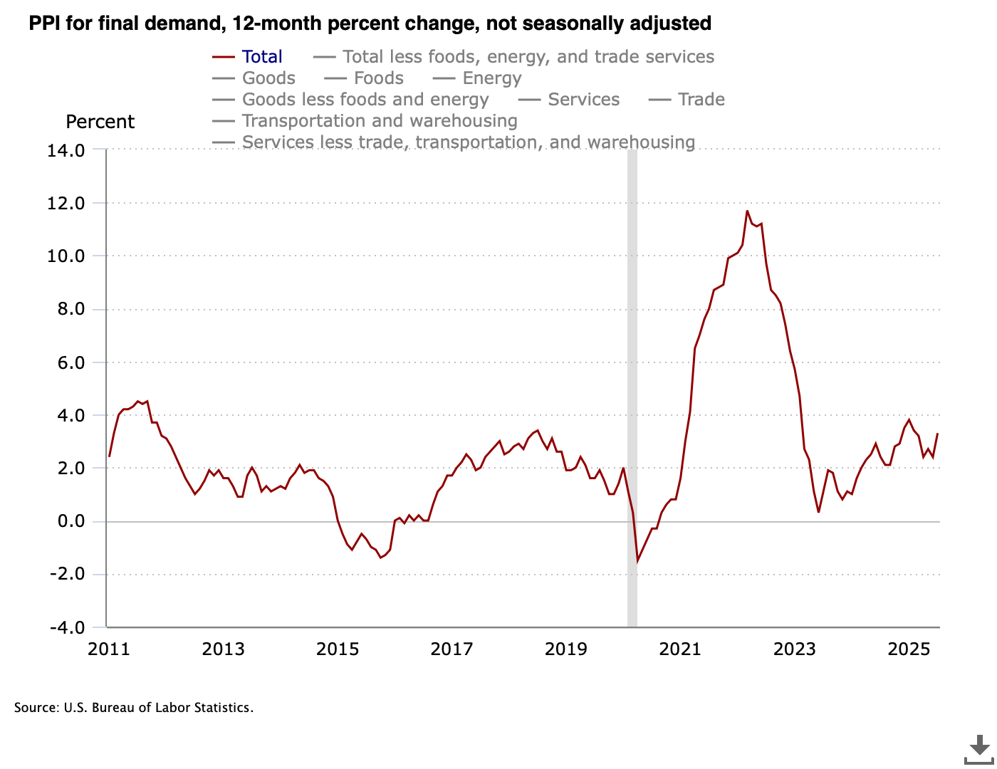 From June 2025 to July 2025 alone, PPI rose 0.9%.