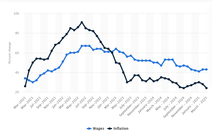 If the economy is slowing, central banks tighten policy (raise rates, decrease money supply), or if companies and consumer expect prices to be stable, higher wages don’t always lead to inflation either.