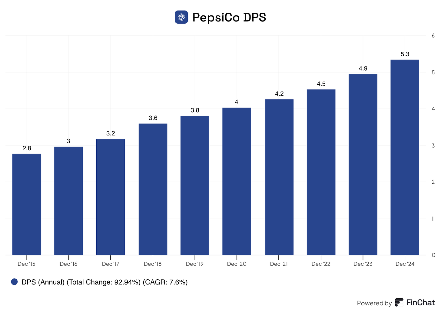 Pepsi has paid—and grown—its dividend for 50 consecutive years. That makes it a Dividend King.
