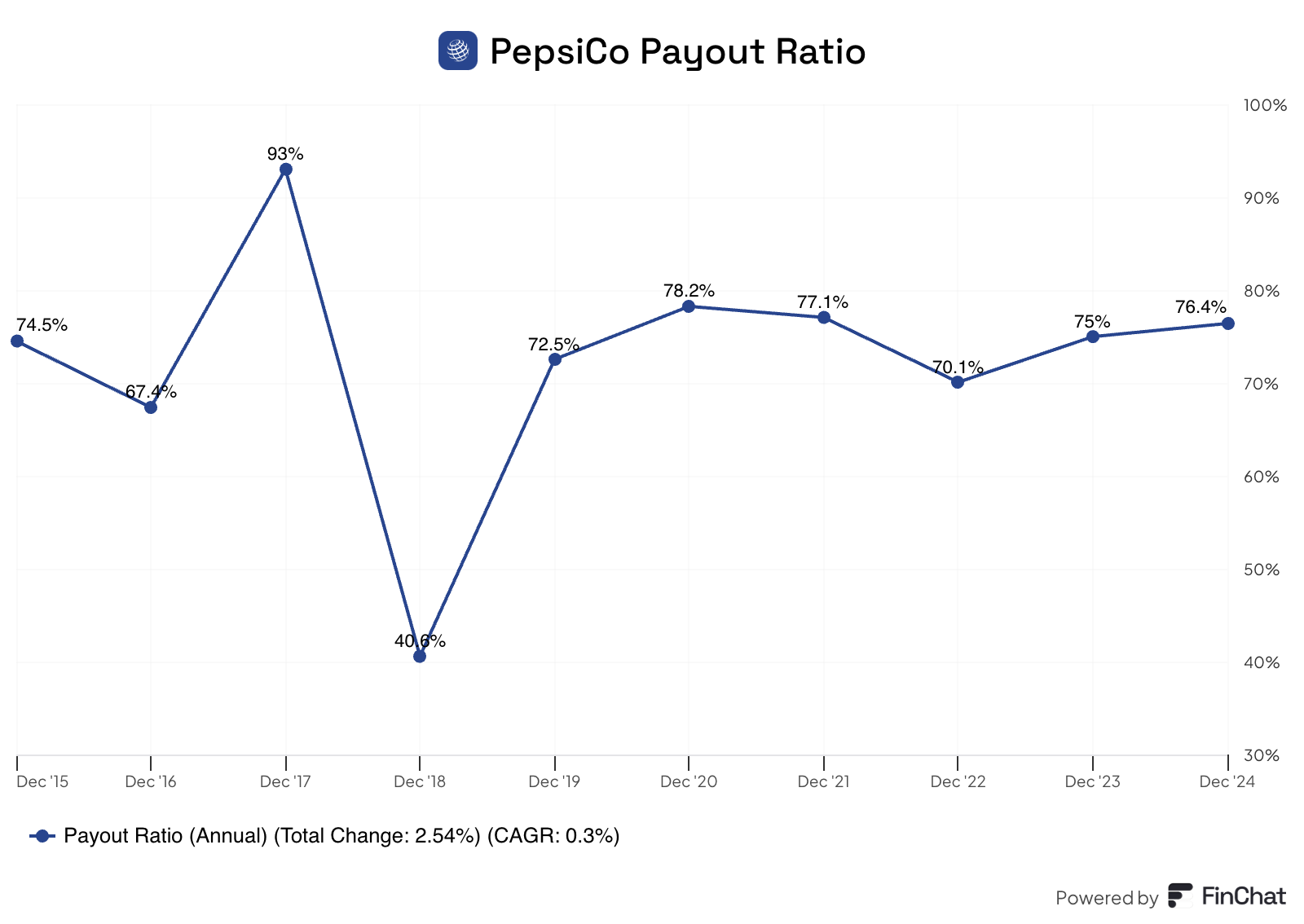 Pepsi already pays out more than 70% of its earnings as dividends. That doesn’t leave much room for growth of the dividend or reinvestment.