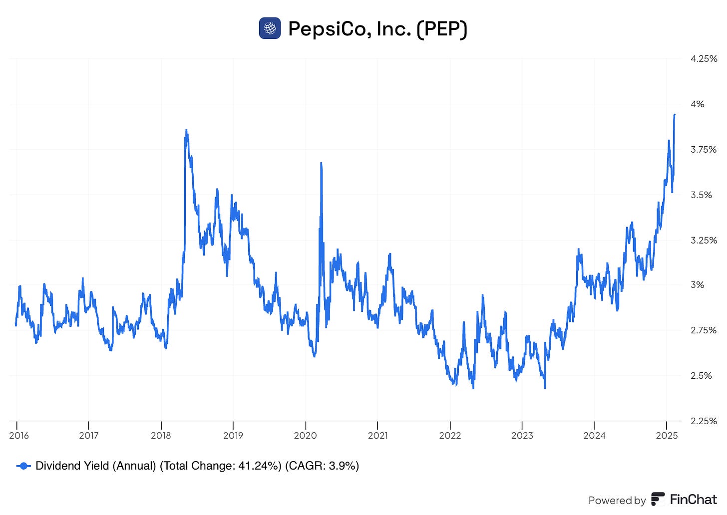 In addition, PepsiCo is trading at a high dividend yield, relative to its history.