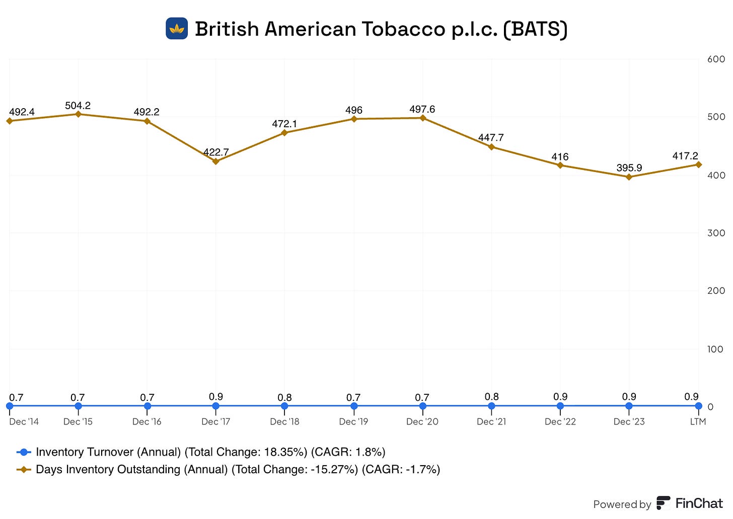 British American Tobacco is seeing falling DIO and rising Inventory Turnover