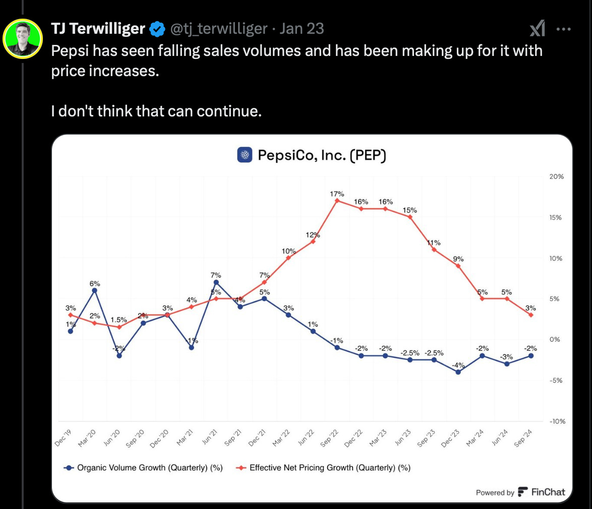 But I looked at PepsiCo a few weeks ago and decided to pass - here’s what I wrote on X at the time: