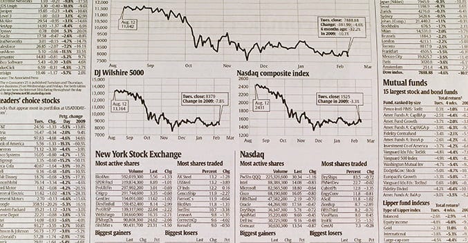 There were charts of the indexes, and some information on individual stocks in tiny type: