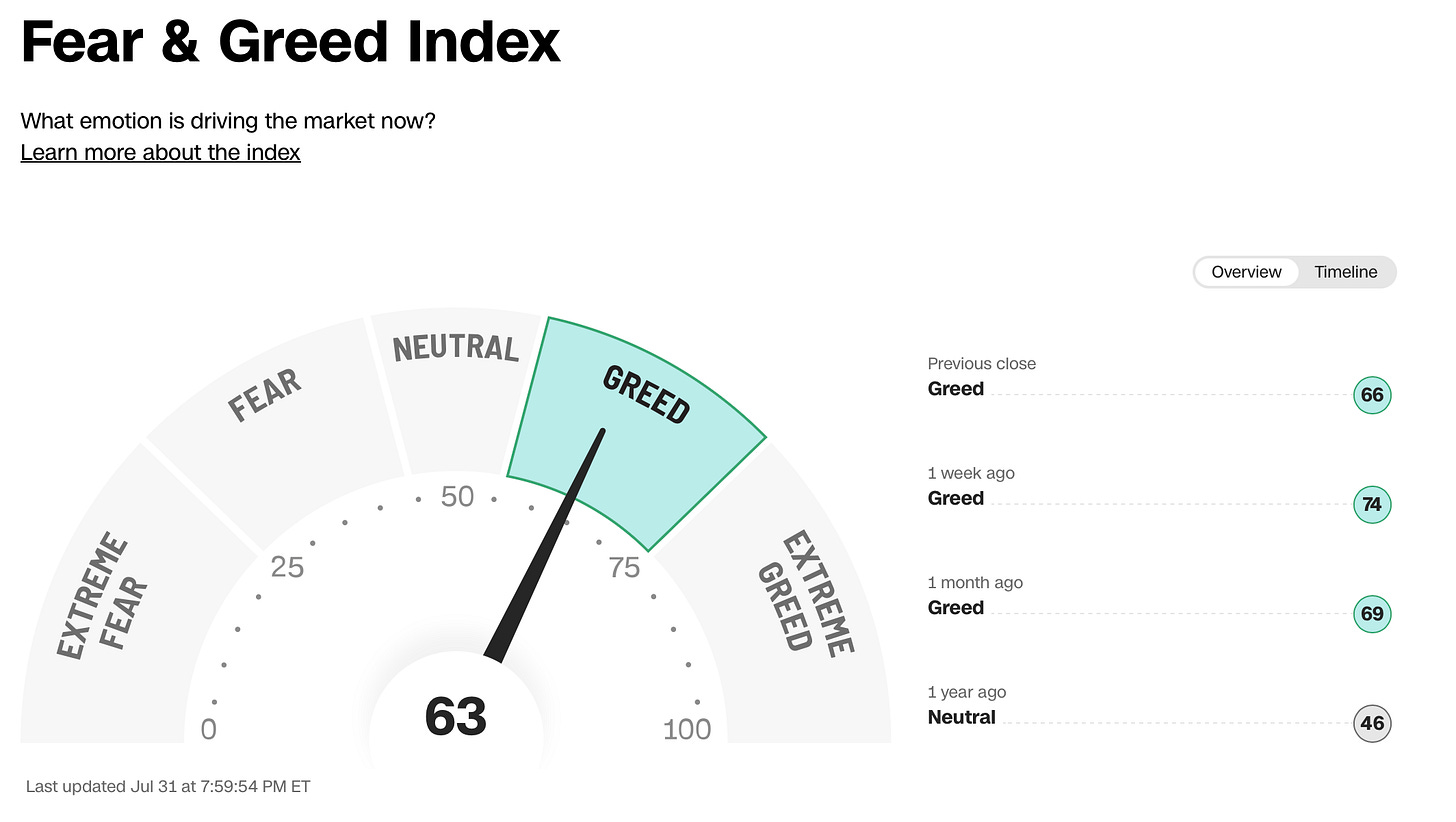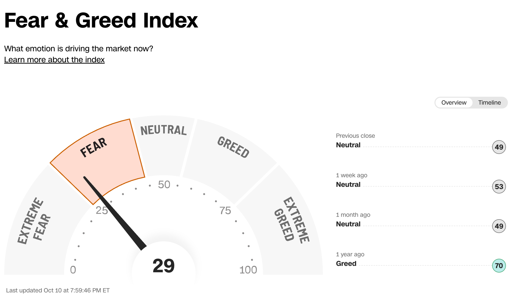 If the market stays in ‘Fear’ mode, we’ll be looking for attractive places to put cash to work.