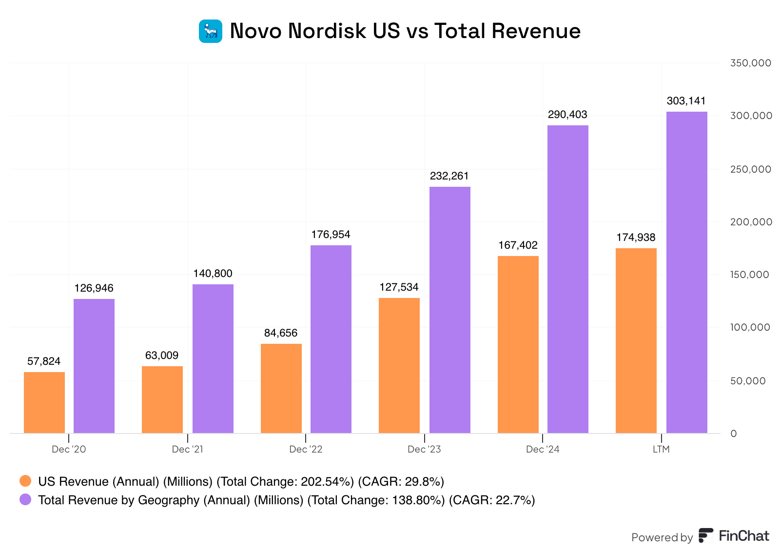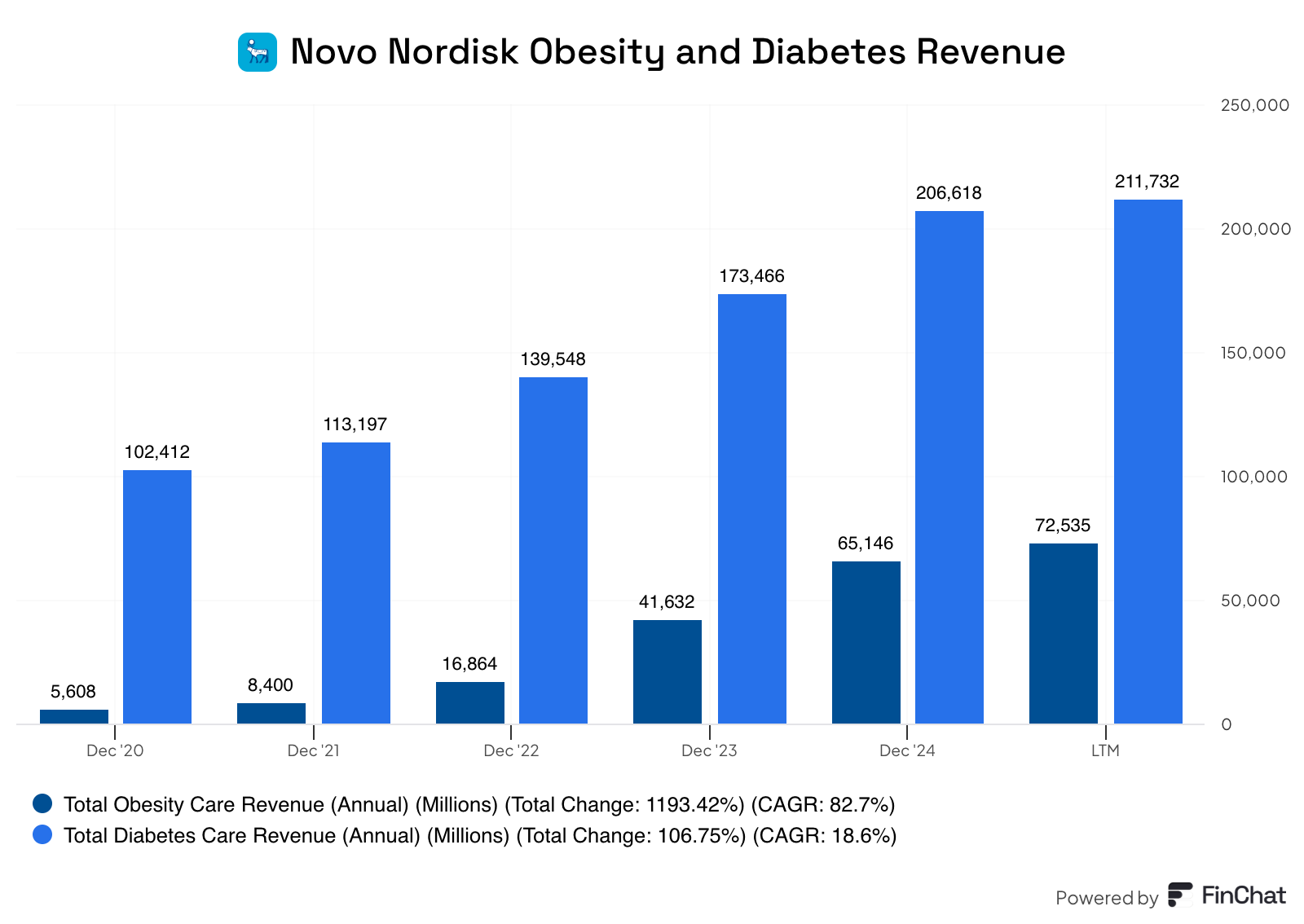 The obesity and diabetes markets are by far the most important for Novo - they made up more than 90% of revenue in 2024.