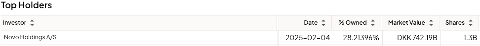 The Novo Nordisk Foundation owns nearly 30% (!) of the company with 1.3B shares.